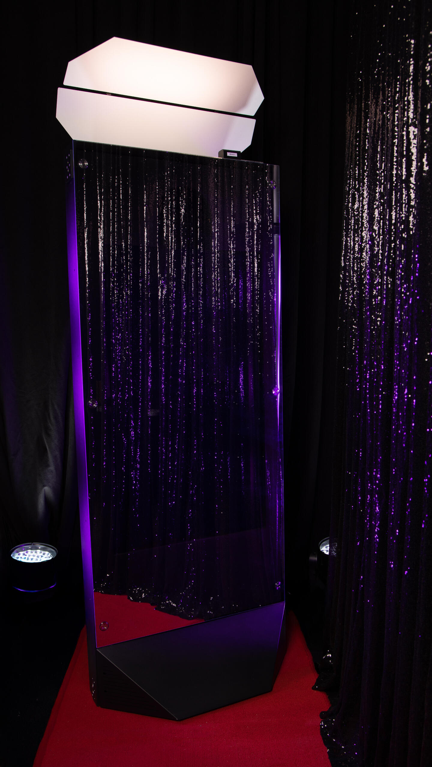 A 6 feet tall mirror booth featuring prints and social sharing. A unique booth for your unique event!